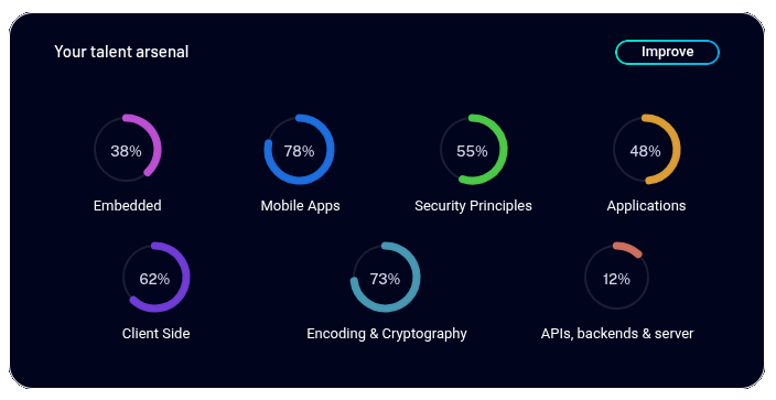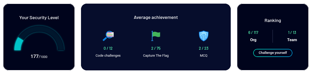 Test and certify your developerʼs theoretical security skills throught targeted multiple-choice questions.